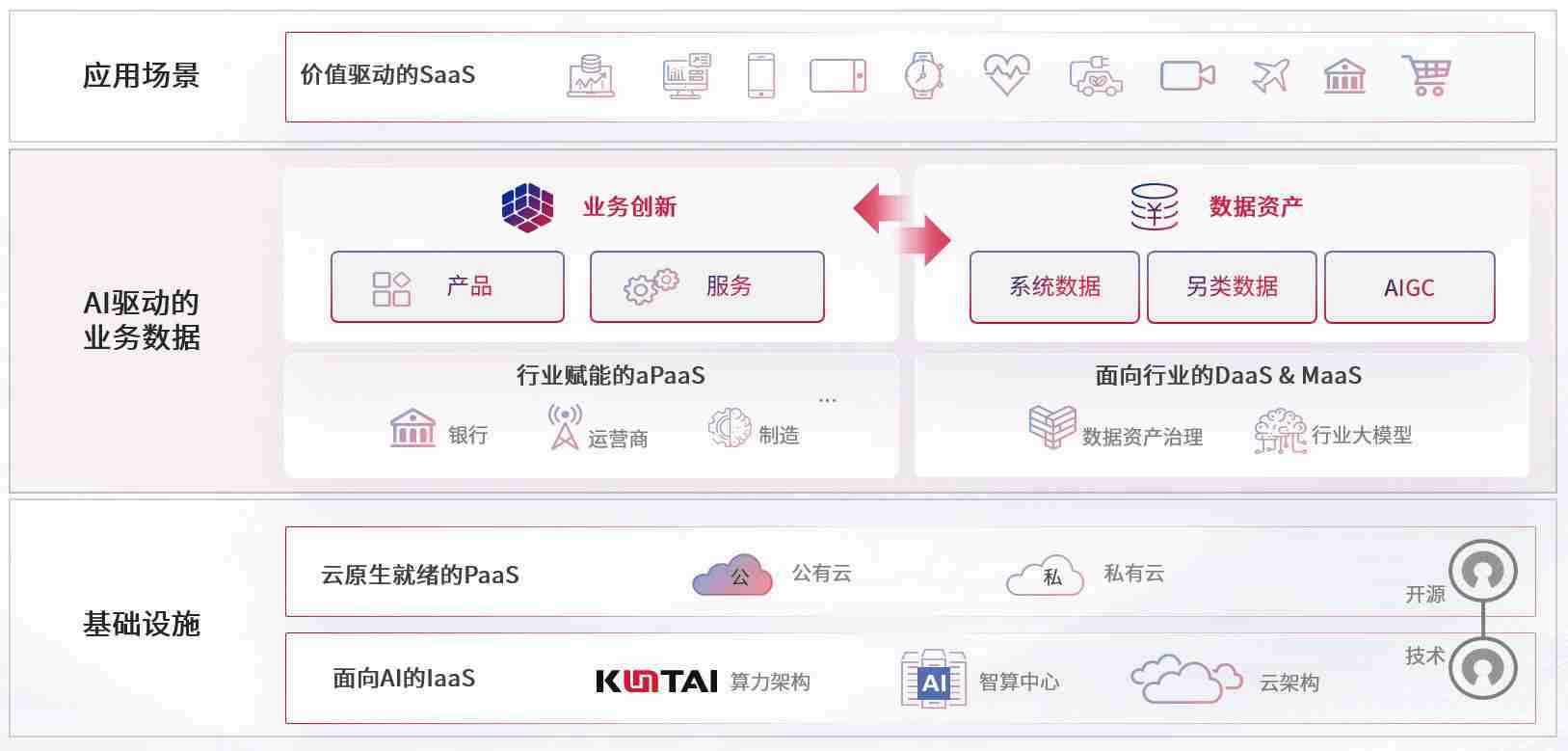 数字时代,,围绕企业数字化转型的关键要素,,,,红龙扑克数码开创性的提出数云融合战略和技术体系框架,,,,着力在云原生、、数字原生、、AI原生和信创产业上架构产品和服务能力,,,,为处在不同数字化转型阶段的快消零售、、、、汽车、、、金融、、、医疗、、政企、、、、教育、、、、运营商等行业客户提供泛在的敏捷IT能力和融合的数据驱动能力,,构建跨界融合创新的数字业务场景和新业务模式,,助力企业级客户建立面向未来的核心能力和竞争优势,,全面推动社会的数字化、、智能化转型升级。。