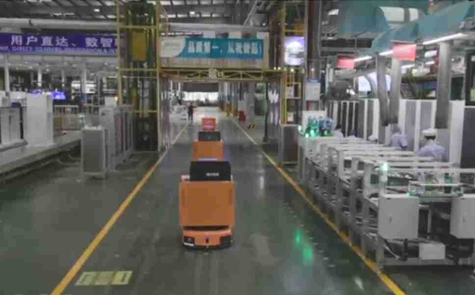 为车载冰箱物流配送打造的智能解决方案,,,包含产中物流通过潜伏举升AMR搬运至线边,,,产后成品物流智能仓储,,,流程包含产中物流智能齐套入库,,,线边安灯叫料AMR智能配送至线边,,,,成品入库、、、、出库,,通过无人堆高车机器人,,,智能仓储管理替代人工作业管理,,,实现更高存储、、、更高效率、、、更具柔性化的解决方案。。。